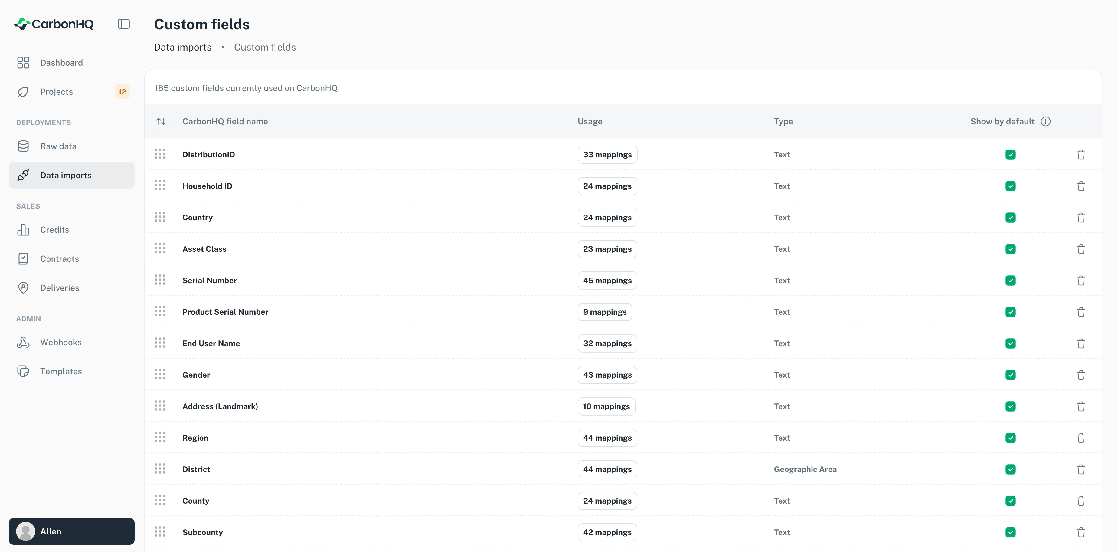 One of the first things we tackled was data structure. Carbon projects depend on clear, transparent data—but that’s hard to maintain when different teams use different tools to collect it. With CarbonHQ’s flexible import tools, UpEnergy was able to consolidate data from multiple sources and build a consistent structure across the organization.