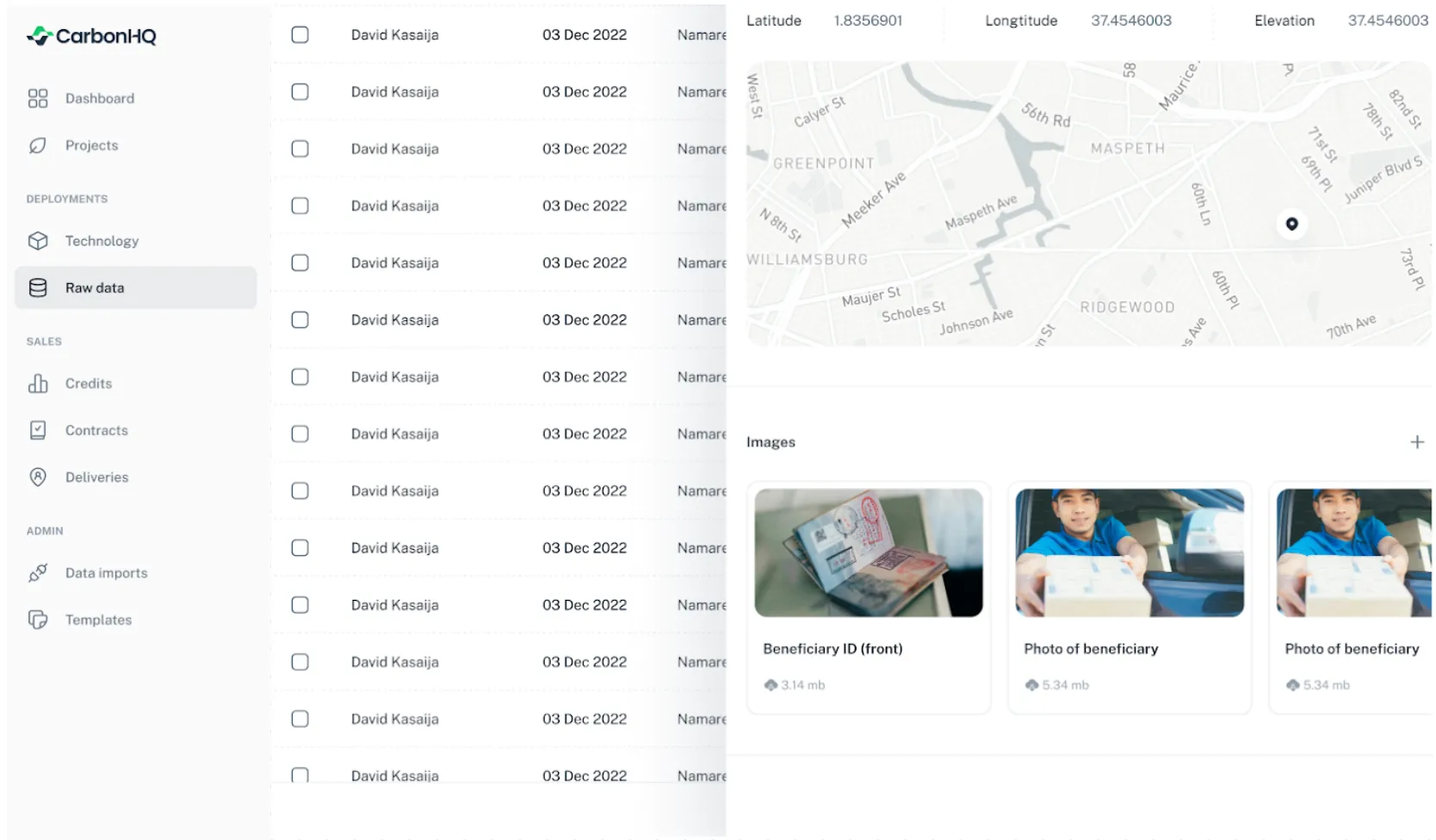 UpEnergy manages huge volumes of data across millions of households. Each record can contain dozens of data points: photos, GPS coordinates, text, numbers, and relevant personal info. Making sense of all that is no easy task. Now, with CarbonHQ, their team can explore datasets, filter information, and access detailed project data instantly.