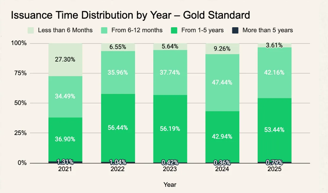Faster issuances: Gold Standard has cut its timelines significantly, with nearly half of its 2025 issuances completed within a year. That speed matters for developers who need quicker monetisation.